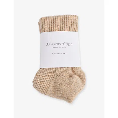 Mens Oatmeal Ribbed Travel Cashmere Socks In Brown