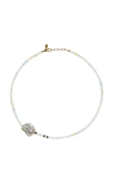 Ice Ombre 18k Yellow Gold Aquamarine Diamond Pearl Necklace In Blue