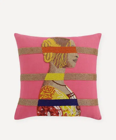 Renaissance Bars Beaded Cushion In Multi