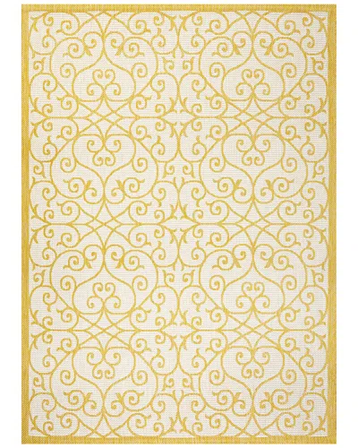 Isla Coastal Cottage Palm Frond Border Indoor/outdoor Area Rug In Yellow