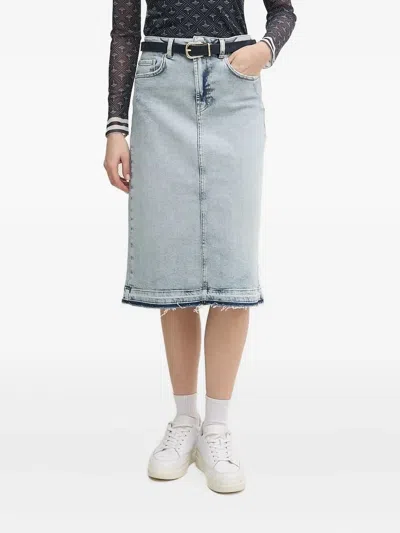 Romy Frayed-hem Denim Midi Skirt In Blue