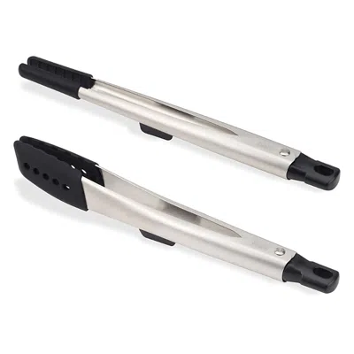 Elevate Fusion Set Of 2 Silicone Tongs With Integrated Tool Rests In Gray