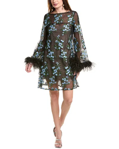 Feather-trim Cocktail Dress In Animal Print