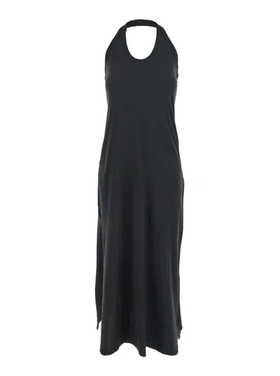 Black Sleeveless Dress With Halterneck And Straight Hem
