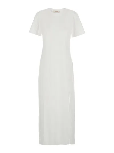 White Long Dress With U-neck And Back Closure In Viscose Blend Woman In Multi