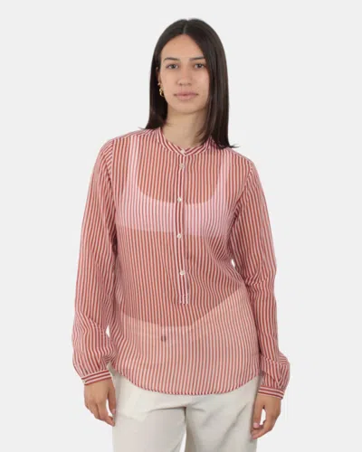 Korean Shirt In Striped Muslin - 1612 Tamarindo In Pink