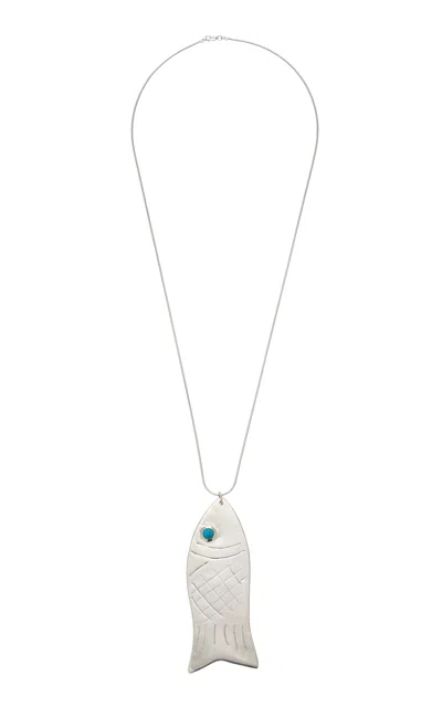 Exclusive Riviera Sterling Silver Turquoise Fish Necklace In Blue