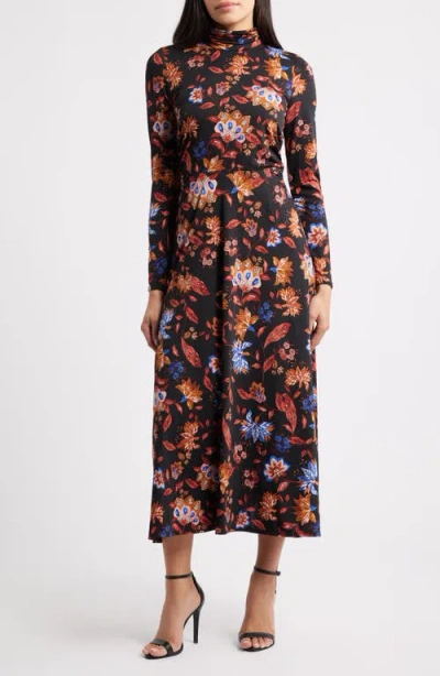 Floral Mock Neck Long Sleeve Midi Dress In Multi