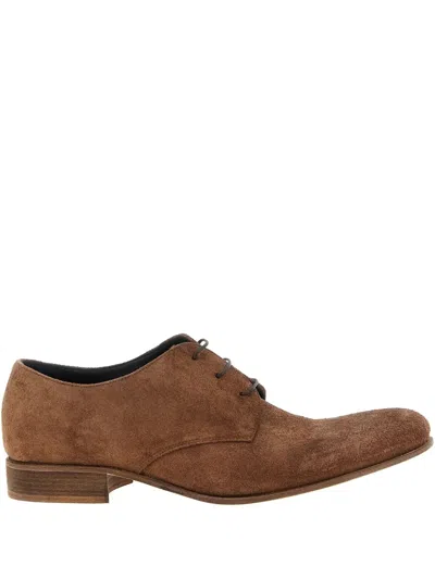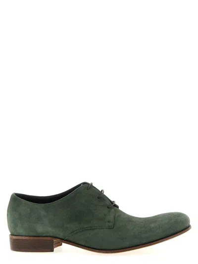 Suede Lace-up Shoes With Rounded Toe In Gray