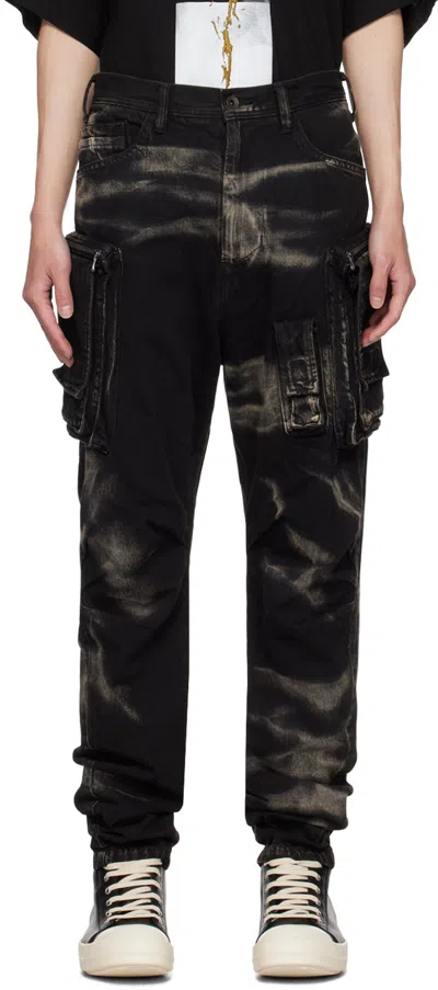 Black Bleached Denim Cargo Pants