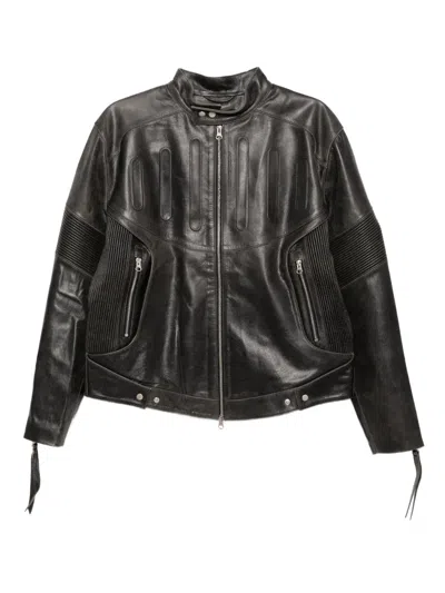 压纹皮质机车夹克