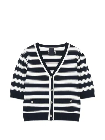 Horizontal-stripe Puff-sleeve Blouse In Blue