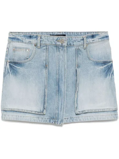 Blue Double Waist Denim Midi Skirt In Q Sky Blue