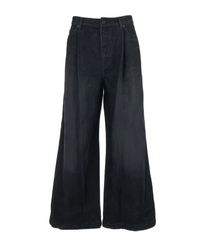 Denim Trousers With Belt Loops In Black