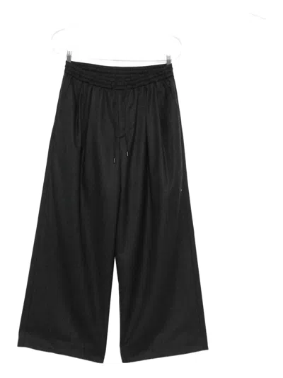 Grey Wool Pleated Trousers In Black