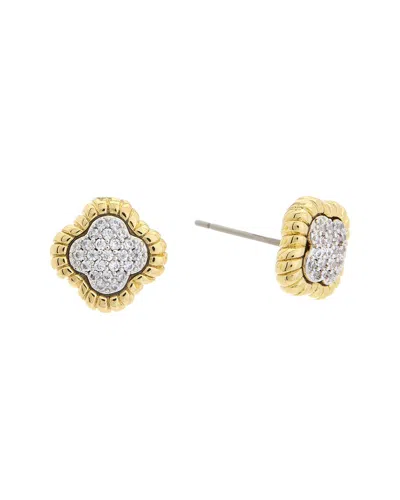 18k Two-tone Plated Cz Flower Earrings In Gold