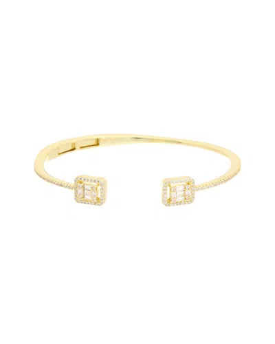 18k Plated Pearl Cz Cuff Bangle Bracelet In Metallic