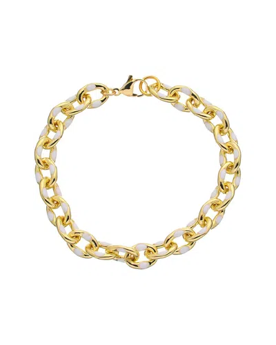 18k Plated Cz Heart Link Bangle Bracelet In Metallic
