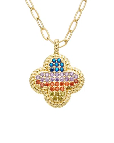 18k Plated Cz Clover Necklace In Green
