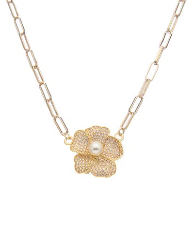 18k Plated Pearl Cz Link Necklace
