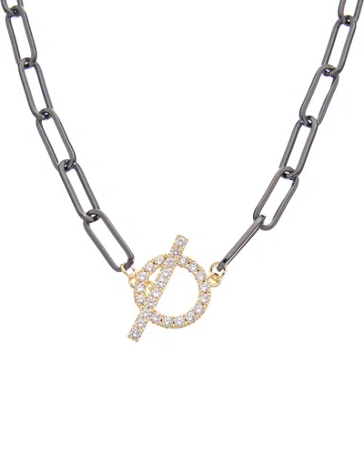 18k Plated Cz Link Necklace In Metallic