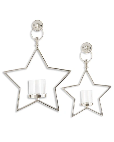 Set Of 2 Metal Star Hurricane Candleholders In Silver