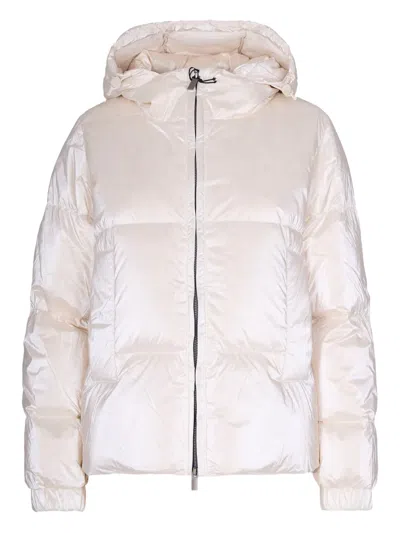 Quilted Down Jacket With Pearlescent Finish And Hood In White