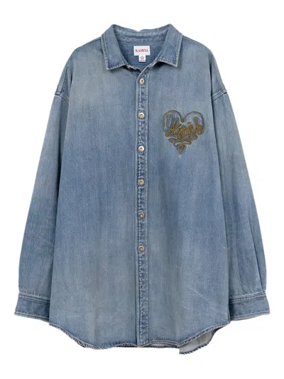 爱心刺绣牛仔衬衫式夹克