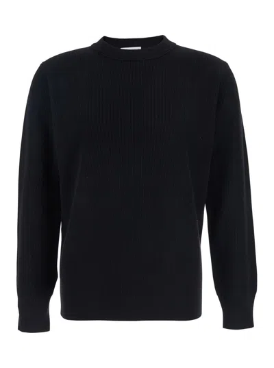 Black Crewneck Sweater With Ribbed Trims In Wool Man