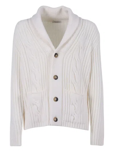 Cable Knitted And Ribbed Shawl Jacket With Pockets In White