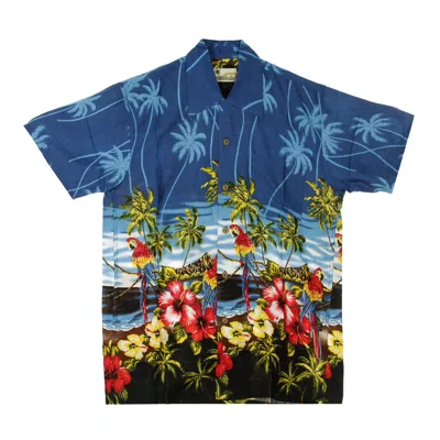 Hawaiian Shirt Parrot Scene Men's Short Sleeve Shirt In Blue