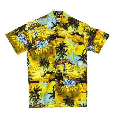 Short Sleeve Men's Hawaiian Shirt Manoa Yellow In Multi