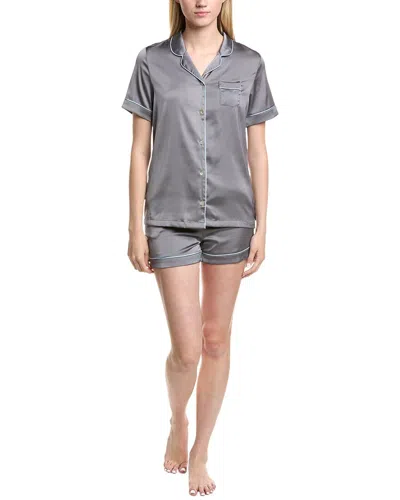 2pc Olivia Satin Stretch Lounge Set In Gray