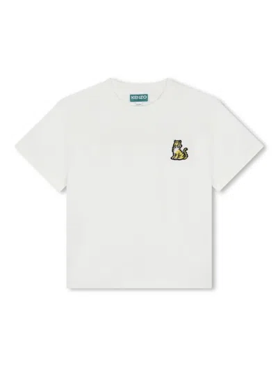 Kids' Embroidered Logo Unisex Cotton T-shirt In White