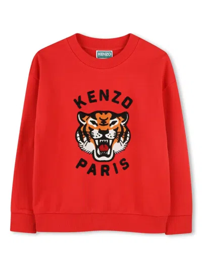 Kids' Tiger Head-embroidered Sweatshirt In Red