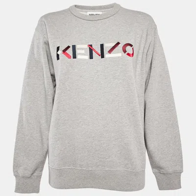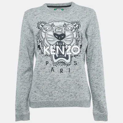 Pre-owned Grey Melange Tiger Embroidered Cotton Sweatshirt L