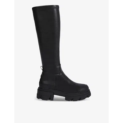 Womens Black Trekker Sock2 Knee-high Faux-leather Boots