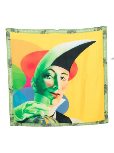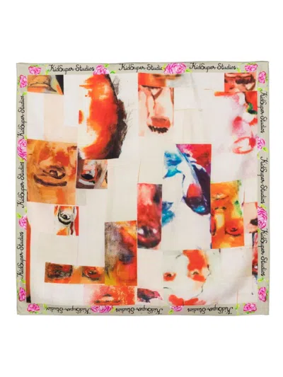 拼贴画脸孔真丝围巾