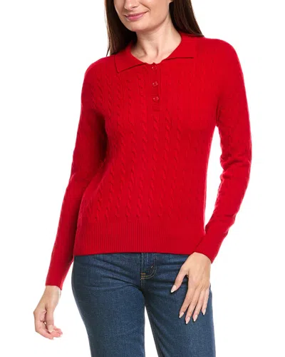 Cable Knit Wool & Cashmere-blend Polo Sweater In Red
