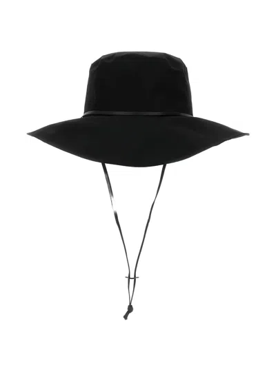 Wide-brimmed Black Hat With Adjustable Chin Straps In Animal Print