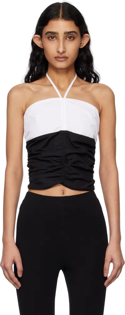 Black & Off-white Shirring Halter Top In Black/off-white