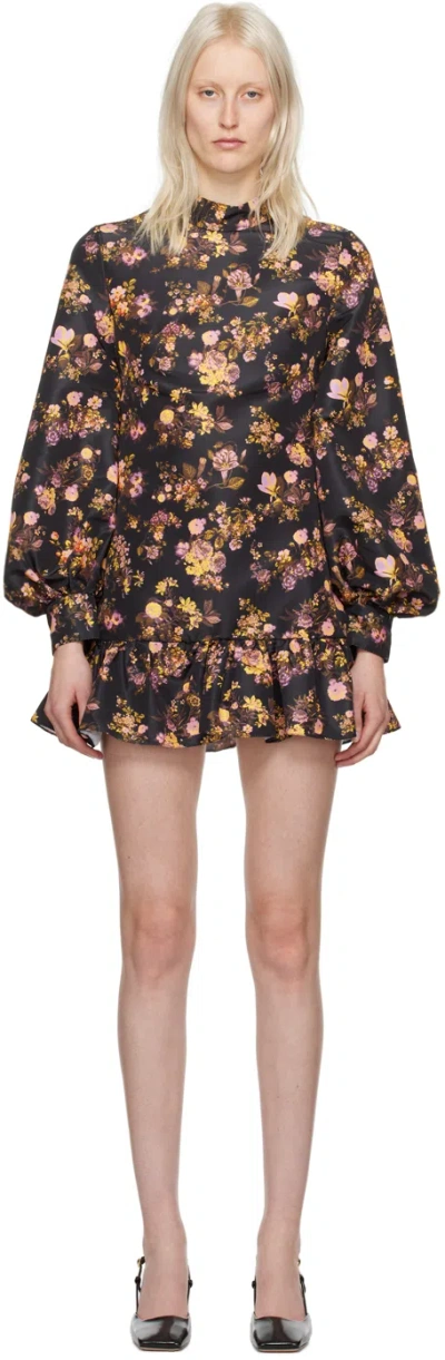 Multicolor Fiona Minidress In Black Garden