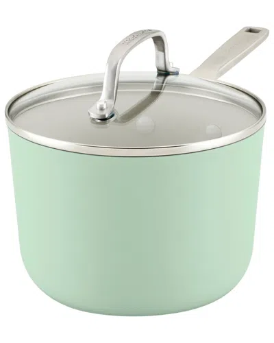 Hard Anodized Ceramic Nonstick Cookware Sauce Pan With Lid In Green