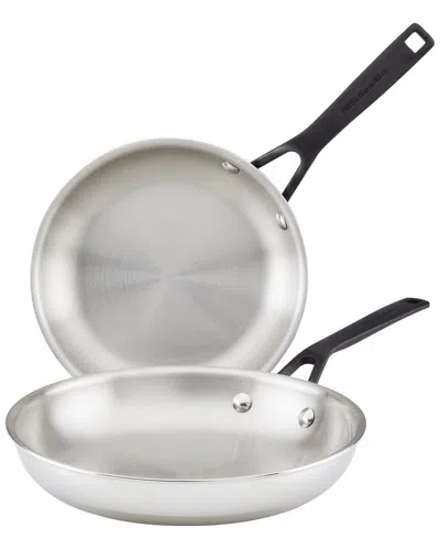 5-ply Clad Stainless Steel Induction Frying Pan Set In Silver