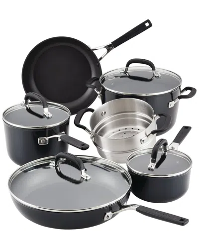 Hard-anodized Nonstick Cookware Pots And Pans Set In Black