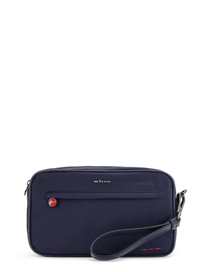 Nylon Clutch Bag With Iconic Logo Embroidery In Blue