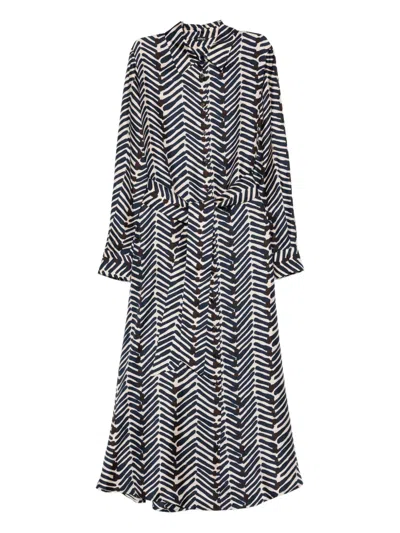 Women's Abstract Silk Long-sleeve Maxi Dress