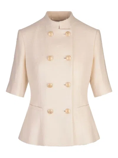 Double-breasted Short Jacket Collar In White