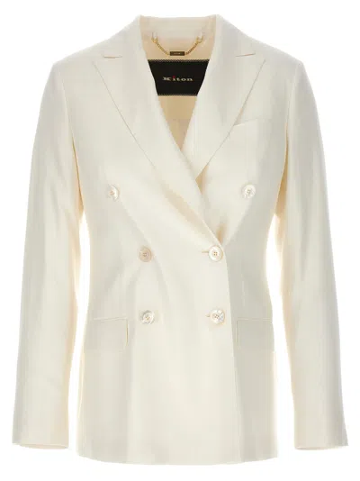 Double-breasted Jacket With Notch Lapels And Back Vent In Beige