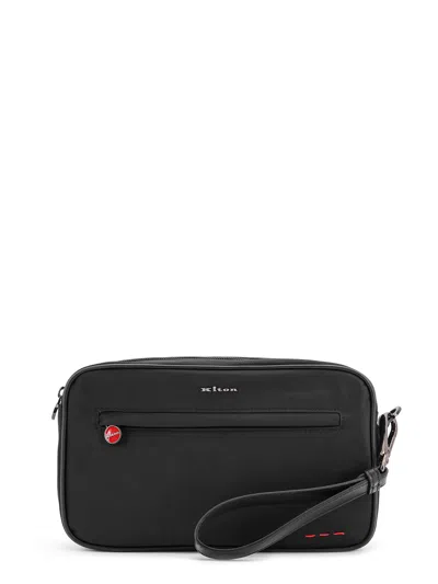 Nylon Clutch Bag With Iconic Logo Embroidery In Black